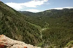 ![]() Hell Roaring Creek flowing through Hell Roaring Canyon in southern Montana | |