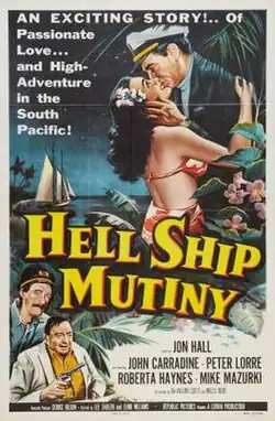 Hell Ship Mutiny is a 1957 American South Seas adventure film directed by Lee Sholem and Elmo Williams starring Jon Hall who also produced and narrated the film.[1] It is a compilation of a 1955 unsold television pilot Knight of the South Seas.[2][3] Hall's father Felix Locher plays the role of a native chief.[4]