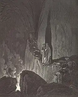 In the Summa Theologica, Thomas Aquinas taught that hell is reserved for the wicked and the unbaptized immediately after death, but that those who die only in original sin will not suffer in hell.[24] On Judgment Day, the punishment of hell will consist of fire and of "whatever is ignoble and sordid", since "all the elements conduce to the torture of the damned", who "placed their end in material things". The worm of the damned is a guilty conscience, that the damned will suffer over the fact of having separated themselves from God, that the damned will physically weep on Judgement Day, that hell is so full of darkness that the damned can only see things which will torment them, that the "disposition of hell" is "utmost unhappiness", that the fire of hell is non-physical (before Judgment Day) and physical (at Judgment Day), that the physical fire of hell will not be made of matter, and that whether or not hell is under the earth is unknown.[25] The suffering of punishment is according to one's sins, so that some will suffer more, in deeper and darker pits of hell, than others.[26]