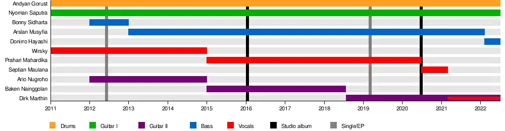 Shortly after the completion of the album, Japs quit the band to pursue hisacareer outside music. He was replaced by Asep (Belantara and former vocalist of Siksakubur) in June 2020.[4]