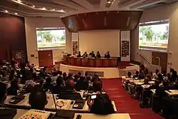 Thessaloniki International Book Fair (TBF) was established in 2004 by EKEVI and since 2014 is under the aegis of HFC. The International Book Fair attracts every year more than 400 publishers, delegations from 30 countries, 65.000 visitors and take place 200 cultural events.[11] Through TBF the Hellenic Foundation for Culture participates in International Book Fairs abroad such as in Frankfurt, in Istanbul, in Kyiv and in Belgrade.[12][13][14][15]