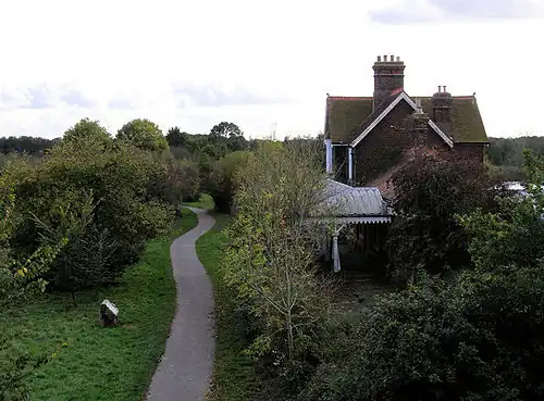 The Cuckoo Line closed shortly after the Hospital Railway. Hellingly station closed to passengers on 14 June 1965, and the line closed for goods traffic on 26 April 1968. The station building complete with platform is now a private residence, and the Cuckoo Line trackbed was converted to the Cuckoo Trail long-distance footpath in 1990.[21] Much of the route of the Hospital Railway is also now a footpath.[22]