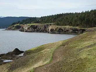 The park has large old-growth Douglas-fir trees and rare Garry oak ecosystems. A trail loops around the bluffs that overlook the Strait of Georgia and links-up with Tribune Bay. The Garry oak meadow ecosystem is one of the many microclimates located within British Columbia and is considered an endangered habitat.[5]