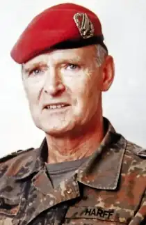 Harff was transferred to the Army Office in April 1994 as the General for Central Army Affairs and the head of Department I.[4] In 1997 he was deployed as the chief of staff of the French-led Multi-National Division Southeast in Mostar, Bosnia-Herzegovina, as part of the NATO-led Stabilization Force (SFOR).[2][3][5] He was described as one of the most experienced Bundeswehr officers in the early years of its foreign missions.[2]