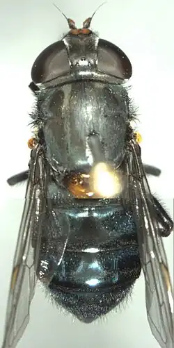 - ^ "Metallic Blue Hover Fly". Taranaki Educational Resource: Research, Analysis and Information Network. Archived from the original on 31 July 2012. Retrieved 28 June 2012.