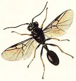 - Sharkey, M.J.; Carpenter, J.M.; Vilhelmsen, L. (2012). "Phylogenetic relationships among superfamilies of Hymenoptera". Cladistics. 28 (1): 80–112. doi:10.1111/j.1096-0031.2011.00366.x. PMID 34861753. S2CID 33628659.