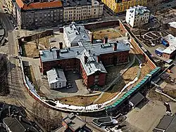 The Helsinki County Prison ("Helsingin lääninvankila" in Finnish) in the Helsinki city quarters of Katajanokka was a prison that operated from 1837 to 2002. It was established in 1837 by Tsar Nikolai I[1] by the side of the Helsinki Crown Prison, which had operated from 1749. When completed, the prison had 12 cells, two rooms for guards and a worship room[2] which is still extant and has been used for church weddings. The prison area was surrounded by a high red brick wall. The prison was extended in 1888 with the construction of a cell block in the form of a cross, in the classical Philadelphia model;[3] the old part of the prison was converted to an administrative building.