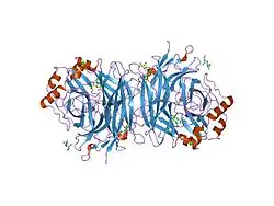 - ^ Yuan P, Thompson TB, Wurzburg BA, Paterson RG, Lamb RA, Jardetzky TS (2005). "Structural studies of the parainfluenza virus 5 hemagglutinin-neuraminidase tetramer in complex with its receptor, sialyllactose". Structure. 13 (5): 803–15. doi:10.1016/j.str.2005.02.019. PMID 15893670.