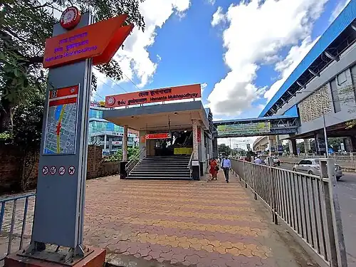 Hemanta Mukhopadhyay is a Metro station of Orange Line of the Kolkata Metro at Ruby Crossing, serving the areas of E.M. Bypass, Kasba and Anandapur.[1] The station is named in honour of the legendary Indian Bengali Playback singer, Music Director & Producer Hemanta Mukhopadhyay.[2][3]