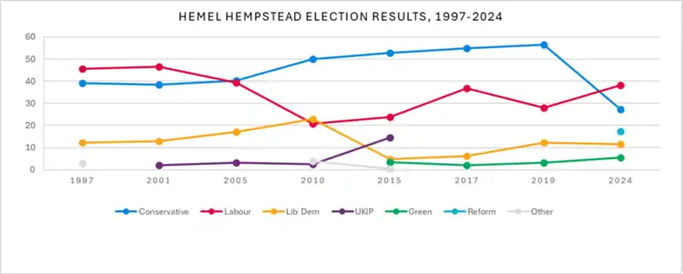 - ^ "Hemel Hempstead - General election results 2024". BBC News. 5 July 2024. Retrieved 9 July 2024.