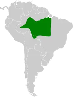 According to Clock in the Cornell Lab of Ornithology's Birds of the World, the nominate subspecies is the easternmost. It is found in Brazil's Pará state in the area of the lower Xingu and Tocantins rivers. Subspecies H. m. snethlageae is the most widespread. Clock places it in central Brazil from the Madeira River east to the Tapajos River and south to northern Rondônia and Mato Grosso states and into northeastern Bolivia's Beni and Santa Cruz departments. Clock places H. m. pallens on both sides of the Amazon from near the Peruvian border in western Amazonas state east to the Negro and Madeira rivers.[8] The Clements taxonomy generally agrees with Clock, sometimes providing a little more detail. (Cornell maintains the Clements taxonomy so the two are not wholly independent.)[6]