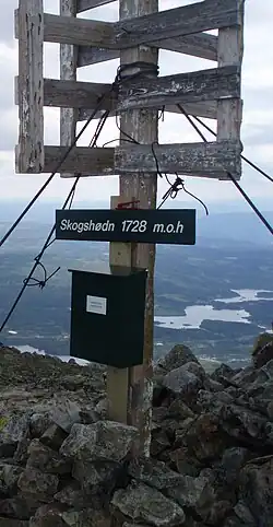 Hemsedal Top 20 is an organisation of twenty mountains in the Hemsedal fell that preferably can be climbed during the summer time. The twenty peaks are each signposted with the name of the peak and the trail leading to the top is marked with either blue-painted stones or a series of cairns. A green box is situated on each peak containing a guest book.[1]