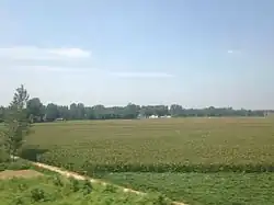 Widely regarded as one of the cradles of Chinese civilization along with the provinces of Shanxi and Shaanxi, Henan is known for its historical prosperity and periodic downturns.[19] The economic prosperity resulted from its extensive fertile plains and its location at the heart of the country. However, its strategic location also means that it has suffered from nearly all of the major wars in China. In addition, the numerous floods of the Yellow River have caused significant damage from time to time.[20] Kaifeng, in particular, has been buried by China's Yellow River's silt seven times due to flooding.