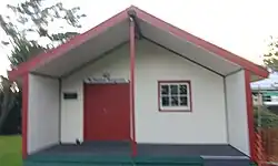 Henderson High School was the first school constructed to a new common design plan, which was used during the post-World War II period to speed up secondary school construction. The "Henderson type school" was a single-storey all-timber school design, with long wings of classrooms facing onto corridors, fanning out from a central spine. It was a derivative of the "Naenae type school" (after its first use at Naenae College in Lower Hutt), which with two stories and mixed concrete and timber construction was too slow for a major school building programme. The Henderson school design lasted four years, 1953 to 1956, before it was replaced in 1957 with a new design centred on self-contained classroom blocks.[7] Other schools in the Auckland area built to the Henderson design include One Tree Hill College, Rangitoto College and Selwyn College.[9] The 'Woolcott' Library developed from an empty room in 1953 to a free-standing building that was opened in 1971 with students transporting "thousands of books to their new home in a mammoth effort amid much good humour".[10]: p.4