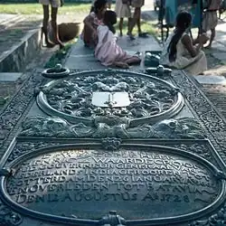 During his term of office, Zwaardecroon had to deal with a lot of unrest in Batavia, including arson in the dockyards and an attack on the gunpowder stores. The wealthy Pieter Eberveld, had inherited some land from his father. The government laid claim to a part of this estate. Eberveld planned an attack on the Dutchmen but some of his slaves warned the government and the attack was thwarted. He confessed on the rack and was condemned to death, along with other plotters. His house was destroyed and a wall erected around where it had stood.[1] His head was stuck on a lance and attached to the wall. A stone with an inscription was erected, indicating that never again would anything be built on that spot.[2] It was only removed during the Japanese occupation (World War II).