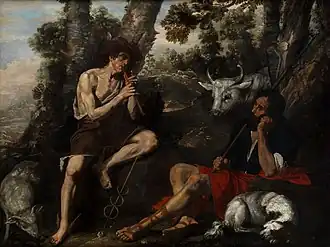 Another key work for identifying the artist's work is the altarpiece of the Baptism of Christ (Naples, Santa Maria della Sapienza) of 1641, which can be attributed with certainty to de Somer since the documentation relating to its commission has been preserved.[7] This early work shows the artist's close connection with de Ribera. In particular it shows similarities with the Martyrdom of Saint Sebastian of Ribera (Museo di Capodimonte). Another influence in this work is the Flagellation of Christ of Caravaggio.[12] Later, like many of his Neapolitan colleagues, de Somer moved away from de Ribera's tenebrism in response to the growing taste for Roman-Bolognese art in Naples. His work shows no trace of his Northern origins.[10]
