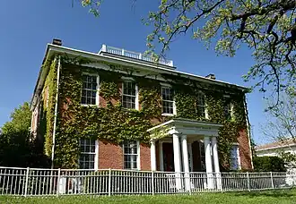 The Henn Mansion, also known as Ewing Hall, is a historic building located in Fairfield, Iowa, United States. A native of New York, Bernhart Henn served two terms in the United States House of Representatives representing Iowa's 1st congressional district as a Democratic. Previously he had served as the Registrar of the U.S. Land Office. He had this two-story, brick, Greek Revival house built in 1858. However, the financial panic of 1857 almost wiped out his fortune. When he died in 1865, the house and the 40 acres (16 ha) of land that surrounded it had to be sold. The house is representative of the financial success one had in the public sector in the pioneer economy.[2] It was also the birthplace of Parsons College in 1875. The house was listed on the National Register of Historic Places in 1983.[1]