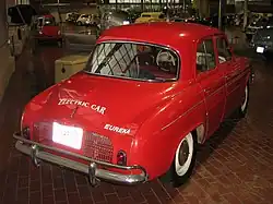 The Henney Kilowatt was an electric car introduced in the United States of America for the 1959 model year.[1] The car used some body parts as made for the Renault Dauphine. An improved model was introduced in 1960 with a top speed of 60 miles an hour and a range of 60 miles. Only 47 cars were sold over the two model years, mostly to electrical utility companies. Only a few still exist.