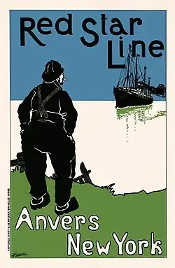 He designed many posters, notably for the Red Star Line, a shipping company of Antwerp, his main client. For some twenty-five years he designed its posters, postcards, and menus.[3]