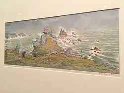 Between 1882 and 1886 Rivière created a large number of etchings. He also showed an interest in photography, making a series of picturesque scenes of everyday life.[5] He later experimented with colour woodcuts and chromolithography in the late 1880s. Rivière first visited Brittany in 1884, spending most of his summers there until 1916. Together with bustling Parisian life, rural Brittany constituted the majority of the subjects of his landscape works.