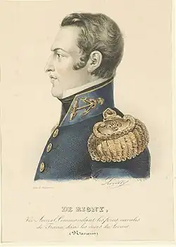 Marie Henri Daniel Gauthier, comte de Rigny (French pronunciation: [ɑ̃ʁi də ʁiɲi]; 2 February 1782 – 6 November 1835) was the commander of the French squadron at the Battle of Navarino in the Greek War of Independence.