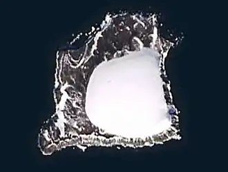 Almost half of the island is covered by a central ice cap that reaches its maximum height at 312 m (1,024 ft) above sea level. The ice cap area has a surface of approximately 6 km2 (2.3 sq mi) and occupies the highest south-eastern part of the island. The southern and eastern edges of the ice cap are fringed by 40 to 50 m (131 to 164 ft) tall icy cliffs rising above the underlying basalt plateau.[2]