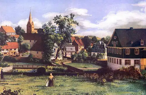 In 1806, Anna took Henriette and her sister Christiane to Gummersbach, to live with their sister Katharina (1776-1841), who had married the wealthy merchant, Heinrich Daniel Theodor Heuser (1767–1848), two years previously. Christiane established a girls' boarding school. Henriette continued to paint, producing the first view of Gummersbach in 1807. She also gave drawing and painting lessons to her nieces, Adeline, Alwine and Louise, all of whom became artists. She remained unmarried.