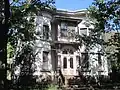 | 1849 | New Haven, Connecticut, Hillhouse Avenue | John Pitkin Norton House. Now owned by Yale University, this house is an irregular Italianate villa inspired by A. J. Downing's designs. The window surrounds, canopies, and styling are typical of Austin, as is the flamboyant Moorish entryway. Although much of the detailing, such as the canopies and balconies, had been lost, the house was restored in 2003 by Yale. The third floor and left wing are additions made to Austin's initial design.[22] | |