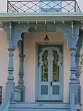 1845 | New Haven, Connecticut, Wooster Square | Willis Bristol House. An Italianate villa with striking Moorish/Indian design elements including candelabra columns, Moorish window lambrequins, and uniquely paned windows.[16] |