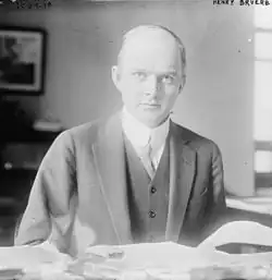 Henry Bruère's more radical sibling, Robert W. Bruère, was an advisor to former President Theodore Roosevelt when the latter was forming his National Progressive Party leading up to the Bull Moose convention.[26] Robert Bruere was a member of the Socialist Party for two years, 1909 and 1910, but became disenchanted with Marxism after he decided it was not suited to the American experience. Nonetheless, he did attend the infamous Barrows' dinner of 1934, which was alleged to be the beginnings of an American socialist revolution during the Great Depression.[27] Robert Bruere was also an early proponent of vocational education.[28] Also removing to New York City from Missouri was Henry's sister, Mina Bruère, a feminist and banking executive in her own right.[29]