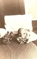 Lucy decided she would return to Coronado, where most of their family and friends were, while Mustin was overseas. Wasting no time, they loaded the children and a few suitcases into the car for another drive cross country. Their furniture and effects would take thirty days to cross the country, and by the time they arrived, Mustin was gone. On 7 July, attempting to make light of a deeply emotional parting, he left her the words, "So long, kid. I'll see you when I've won the war." For the rest of his life he would hold in his mind the image of his "beautiful, young, pregnant wife standing in an empty living room, surrounded by three tiny children."[1]