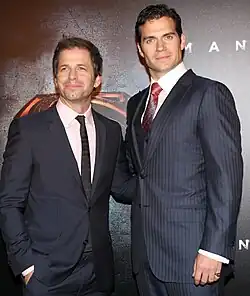 On 30 January 2011, it was announced that Cavill had been cast in the role of Clark Kent / Superman in director Zack Snyder's Man of Steel.[25] Snyder called Cavill "the perfect choice to don the cape and S shield."[26][27] Entertainment media applauded Henry Cavill on his road to success.[28][29] On being chosen for the role, Cavill commented, "In the pantheon of superheroes, Superman is the most recognized and revered character of all time, and I am honoured to be a part of his return to the big screen."[30] Cavill reprised the role of Superman in Batman v Superman: Dawn of Justice, a 2016 sequel which featured a crossover with Batman[31] and Wonder Woman.[32][33] He attended San Diego Comic-Con in disguise to surprise the cast of Suicide Squad.[34]