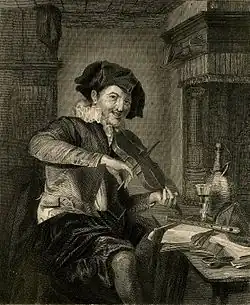 The Merry Fiddler (1833), engraving by Henry Chawner Shenton after Gerrit Adriaensz. Berckheyde, for the Cabinet Gallery of Allan Cunningham