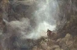 Whaite displayed a vibrant style in his watercolours, and was noted for his ability to capture changing weather conditions in his landscapes, which often evoked a religious wonder.[6] His religious beliefs were a strong influence on his work, and although his faith emerged in his work through an attached moral significance to the landscape, he also painted explicitly Christian themes as in The Awakening of Christian (c. 1885) and Arthur in the Gruesome Glen.[6]