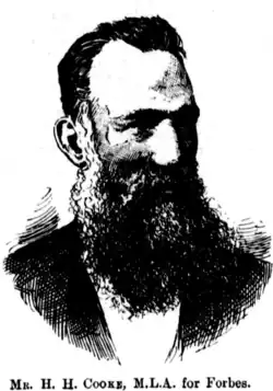 - ^ "Parliamentary portraits: Mr H H Cooke MLA for Forbes". Australian Town and Country Journal. 16 April 1887. p. 13. Retrieved 6 July 2021 – via Trove.