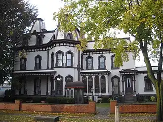 The Henry DeLand House also known as the Green Lantern Inn was built from 1874 to 1876 in the village of Fairport, New York as a home for Henry Addison DeLand. DeLand was a member of an influential local family and was a baking soda manufacturer. It is located at 1 East Church Street, at the intersection of South Main street.