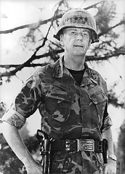 Henry Everett Emerson[1] gained recognition during the Vietnam War for his tactical ability on the battlefield. His tactics as a commander were novel.[3] He conceived aerial reconnaissance and combat methods that were employed effectively against the Viet Cong. These included a "checkerboard concept" that involves small groups covering grid squares to seek out an enemy, "jitterbug" tactics which are complex manoeuvres using helicopters to surround an enemy. To the uninitiated this would seem jittery like the dance, and "Eagle Flights" which were helicopters loaded with local soldiers and flown in quickly to assist foreign troops in certain situations.[4][5] He demonstrated that American soldiers could effectively "out-guerrilla" the Viet Cong. Emerson also developed the "seal-and-pile-on technique" (the rapid build-up of combat power to surround and destroy an enemy force). These highly complex tactics shattered many large enemy units.