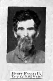 Henry F. Frizzell (December 1839 – May 1904) was a Union Army soldier and Medal of Honor recipient. A Madision County, Missouri native and self-described "Union Man", he served during the American Civil War. In August 1861, Henry traveled to Camp Blood in Pilot Knob, Missouri and enlisted for 3 years in the 6th Missouri Infantry.