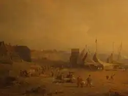 Hine's style was based on that of Copley Fielding. By 1830, from Brighton, he contributed to London exhibitions, sending six pictures to the Royal Academy and 12 to the Suffolk Street Gallery between then and 1851. In 1856 he had three water-colours at Suffolk Street, and in 1859 an oil painting, Smugglers waiting for a Lugger, attracted attention at the Academy.[1]