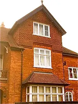 - St Michael's Vicarage, Gibraltar Hill, Drury Lane, Lincoln.1882. Prominently sited overlooking Lincoln from just below the Castle. Arts and Crafts style with tile hanging and upper part of projecting gable half timbered. Brick arcaded chimney stack. Built for the Rev. G. B. Jamieson[57]