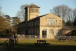 - Lincoln Hartshome Hall,[29] was built in 1862 for the industrialist Joseph Shuttleworth. The grounds were laid out by the landscape architect Edward Milner and included a lake, imported and native trees and shrubs, yew trees forming the Ladies’ Walk, a yew circle, a small crescent-shaped pond and a ha-ha.[30] Surviving buildings and structures include the boathouse (built in 1881 and bearing the Shuttleworth Crescent), stables, a lodge along the track leading to Doddington Road, balustrades and steps, and a number of monuments including the obelisk on the north side of the lake. Hartsholme Hall itself was demolished in 1951 after being purchased by Lincoln City.[31]