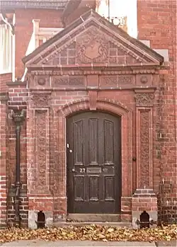 - Eastfield, 27 Wragby Road. Lincoln. 1893 A house which F. H. Goddard had built for himself shortly before his retirement. Art and Crafts in style, facing to the south, with a largely blank brick wall towards the road, but with a massive terracotta Elizabethan Renaissance revival doorway as an entrance from the road.[65] The terracotta was probably manufactured by the Lincoln firm of Fambrini & Daniels.