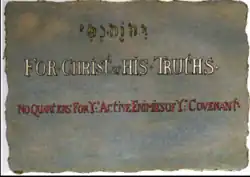 When Hall was taken, there was found upon him a paper that has been called, from the place where it was got, the Queensferry Paper. It was not acknowledged by Donald Cargill, for it does not seem to have been revised; and it was unsigned, but it is not doubted that it mainly came from his pen. The Queensferry Paper, shocked the government as the subscribers renounced allegiance to the existing king and government, and engaged to defend their rights and privileges, natural, civil, and divine.[8][2] Some writers point to it as being an early proclamation of the freedom of religion and of self-defence; others point out the radical nature of the politics, foreshadowing the Sanquhar Declaration of 22 June 1680- a year to the day after the battle of Bothwell Bridge.[9][10][4][5]