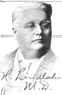 - ^ "Henry Lindlahr, 26 Mar 1924; Public Board of Health, Archives, Springfield; FHL microfilm 1,877,526". Illinois Deaths and Stillbirths, 1916-1947 via FamilySearch. Retrieved 7 June 2016.