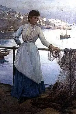 Rheam was born in Birkenhead and studied in Germany and at the Académie Julian in Paris before settling in Newlyn and associating with the Newlyn School.[2] He is known for his late Pre-Raphaelite paintings. The Girl in Blue artist model was Effy James.