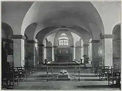 Milman was buried in the crypt of St. Paul's Cathedral, where his grave was marked by an elaborate tomb.[4] When the Chapel of the Order of the British Empire was created, the original tomb was replaced by a slab in the floor.