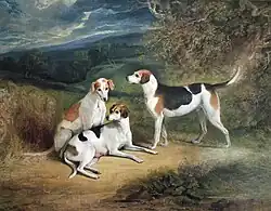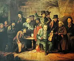 In addition to portraits, Parker produced ‘fancy pictures’ for broker's shops.[6] David Mannings defines ‘fancy pictures’ as being ‘contemporary genre pictures of sentimental realism, in which the artist’s own whimsy played a substantial part'.[7] Parker was a contemporary of David Wilkie (1785–1841), a particularly successful exponent of this type of droll depiction of everyday situations and someone whose work at times provided an inspiration. That Parker’s painting Dead Game was chosen for exhibition at Royal Academy in London in 1817[8] added to his artistic standing.