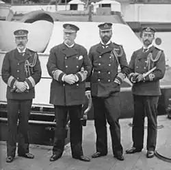 Vice Admiral Sir Henry Stephenson (second from left) Commander-in-Chief of the Channel Squadron with Staff on board HMS Majestic 1896