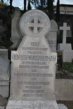 Winterbotham died in Rome in December 1873, aged 36, allegedly from overwork.[3] His brother Arthur Brend Winterbotham was also a Member of Parliament.