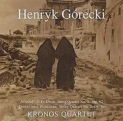 Henryk Górecki: String Quartets Nos. 1 and 2 is a studio album by the Kronos Quartet, with two compositions by Polish composer Henryk Górecki. The Kronos Quartet had recorded "Already It Is Dusk", his first string quartet, in 1990 and released it on Henryk Mikolaj Górecki: Already It Is Dusk/"Lerchenmusik". The Kronos Quartet recorded and released all three of Górecki's string quartets, the third and last in 2007, on Henryk Górecki: String Quartet No. 3 ('...songs are sung').